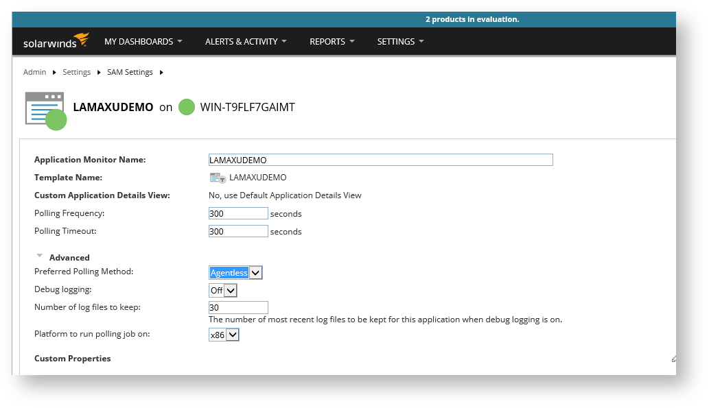 To fix the "JMX polling is not supported, use Agentless polling instead" Solarwinds error, change the preferred polling method to for the application monitor Agentless.