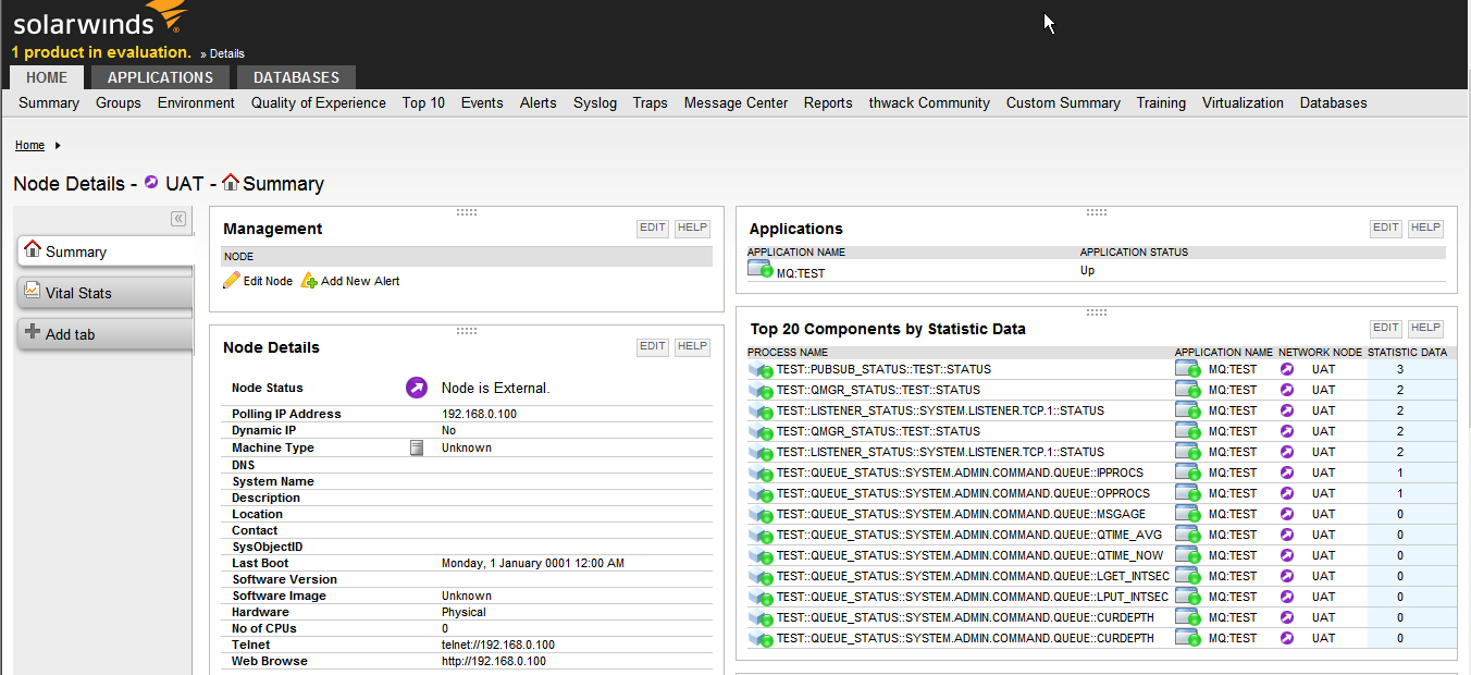 Solarwinds Component Statistics Dashboard
